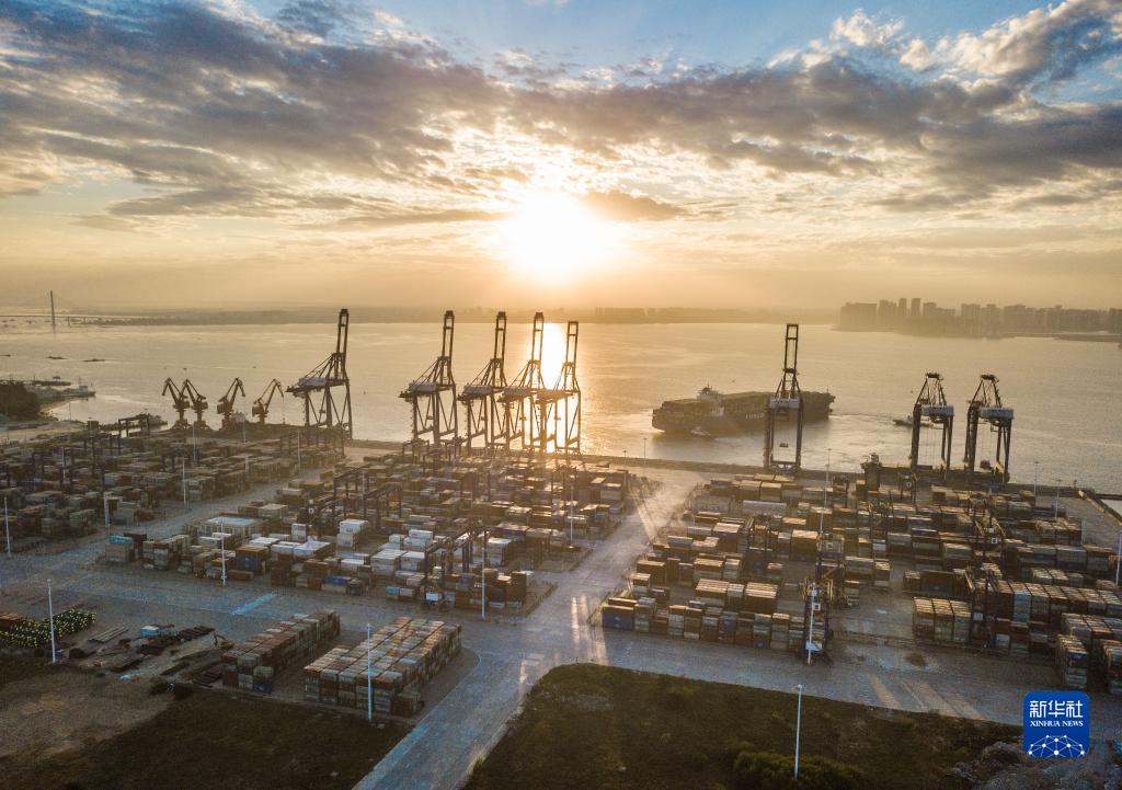 这是2021年12月5日清晨在海南自贸港重点园区洋浦经济开发区拍摄的洋浦国际集装箱码头(无人机照片)。