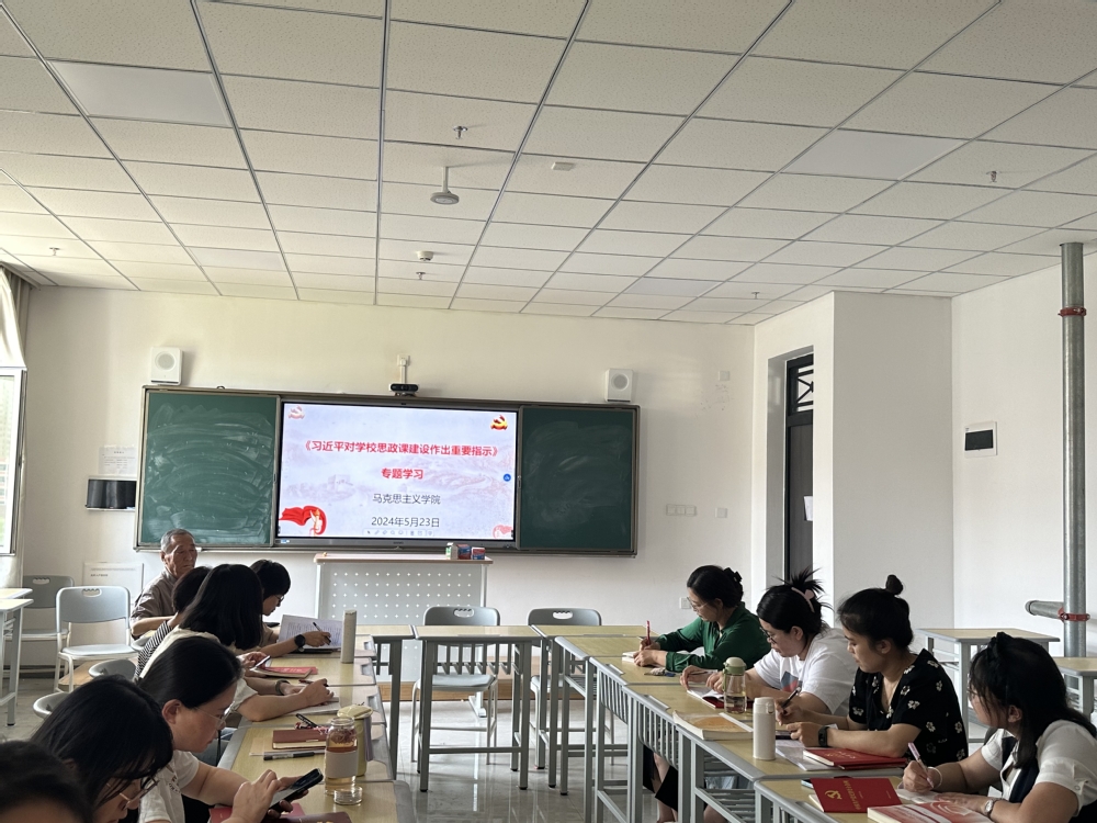 5月23日,马克思主义学院召开专题会议集中学习习近平总书记对学校思政课建设作出的重要指示精神,学院全体教师参加,会议由党支部副书记张志霞主持。