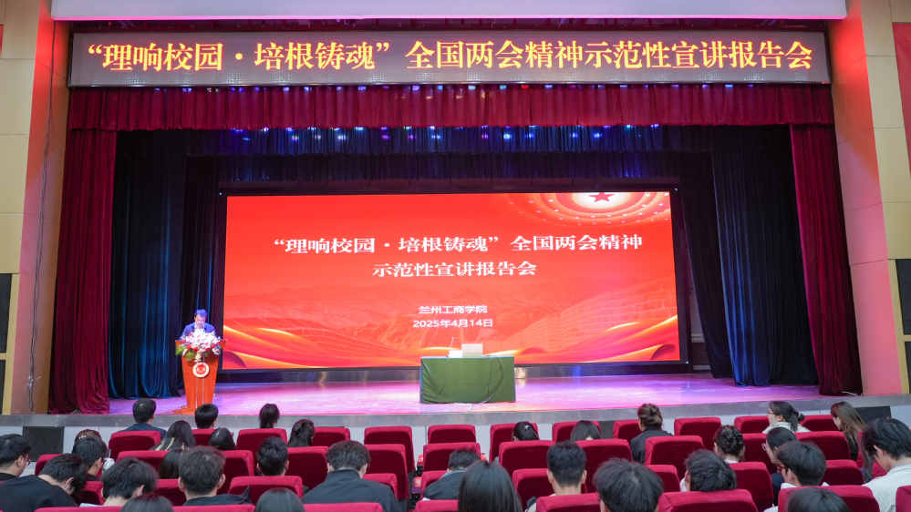 为全面深入学习领会习近平总书记在全国两会期间发表的一系列重要讲话精神以及全国两会审议通过的报告和文件精神,根据省委教育工委统一安排,4月14日下午,学校举办“理响校园·培根铸魂”全国两会精神示范性宣讲报告会,省委教育工委第七宣讲团成员,兰州大学马克思主义学院党委书记杨宏伟教授和西北师范大学马克思主义学院硕士研究生张雅荣同学为我校师生作了宣讲。学校党委宣传部负责人、各基层党组织书记、马克思主义学院教师、党政秘书、学生代表等共计800余人参加。报告会由学校党委副书记郇东主持。