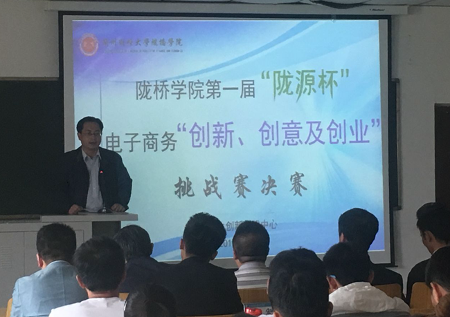 5月9日下午,陇桥学院第一届“陇源杯”电子商务“创新、创意及创业”挑战赛决赛在学术厅204室顺利举行。兰州市就业和人才服务局王伟程副局长应邀参加并为大赛致辞,副院长燕宏副教授代表学院做了发言,教务处、大学生创新实践中心、就业指导服务中心、团委等部门负责人到场参加。担任本届大赛决赛的评委是:国家认证高级职业经理人、兰州市企业管理咨询行业协会副秘书长、企业管理发展定位实战专家万咏先,兰州義狼网络有限公司总经理、陇源“互联网+”品牌孵化中心创始人马玉杰,平安天下通金融理财分析师、互联网金融专家马涛,陇桥学院副院长高军,陇桥学院信息工程系教师张依山。本届大赛得到了陇源创业就业服务中心的大力支持和帮助。