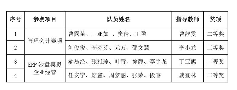 比赛期间,各队成员之间团结合作,分工明确,不畏强手,并立前行,在发扬团结协作精神的同时,利用扎实娴熟的专业理论知识及计算机操作技能,科学合理的制定企业模拟经营方案,最终取得了好成绩。大赛为经管专业学生提供了实训交流的平台,让同学们在比赛中更好的了解和掌握企业实际业务及管理软件工具,同时提升了自己的岗位能力和实际动手能力。