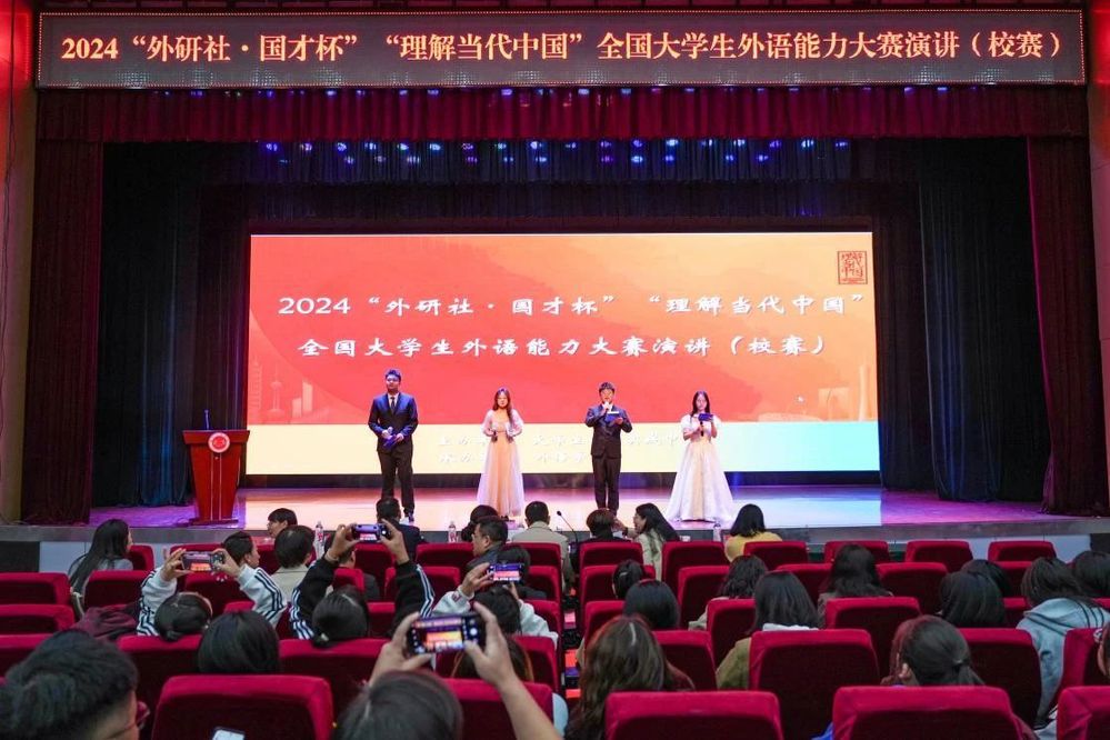 2024年10月11日,由大学生创新实践中心主办,外语学院承办的外研社“国才杯”“理解当代中国”全国大学生外语能力大赛(校赛)在学术报告厅圆满落幕。西北民族大学王谋清教授、西北师范大学靳琰教授、兰州财经大学张璐教授以及外语学院的印世海、秦玉锐、陆文、阮晓静等四位专任教师担任此次大赛评委。