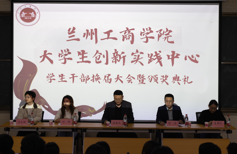 10月17日下午,兰州工商学院大学生创新实践中心学生干部换届大会暨颁奖典礼在综合教学楼C504顺利举行。兰州工商学院副校长张春庆教授、大学生创新实践中心主任张浩,大学生创新实践中心老师祁琛、夏颢凡、马志明及上一届学生干部,本届学生干部100余人共同参加此次大会。