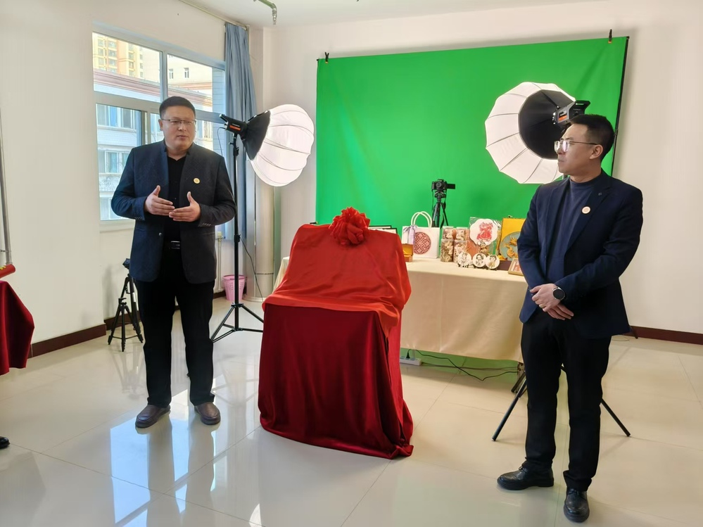 在热烈的掌声中,兰州工商学院副校长张春庆教授、大学生创新实践中心副主任张浩共同为校园直播间揭牌,标志着直播间正式启用。随后,众人一同参观了直播间内部设施。