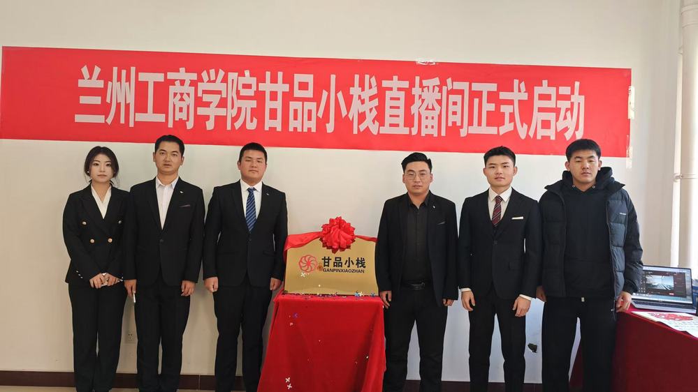 2024年12月2日,兰州工商学院“甘品小栈”直播间揭牌仪式在科研楼312顺利举行。兰州工商学院副校长张春庆教授、大学生创新实践中心副主任张浩,以及众创空间20余学生代表共同参加了本次活动。
