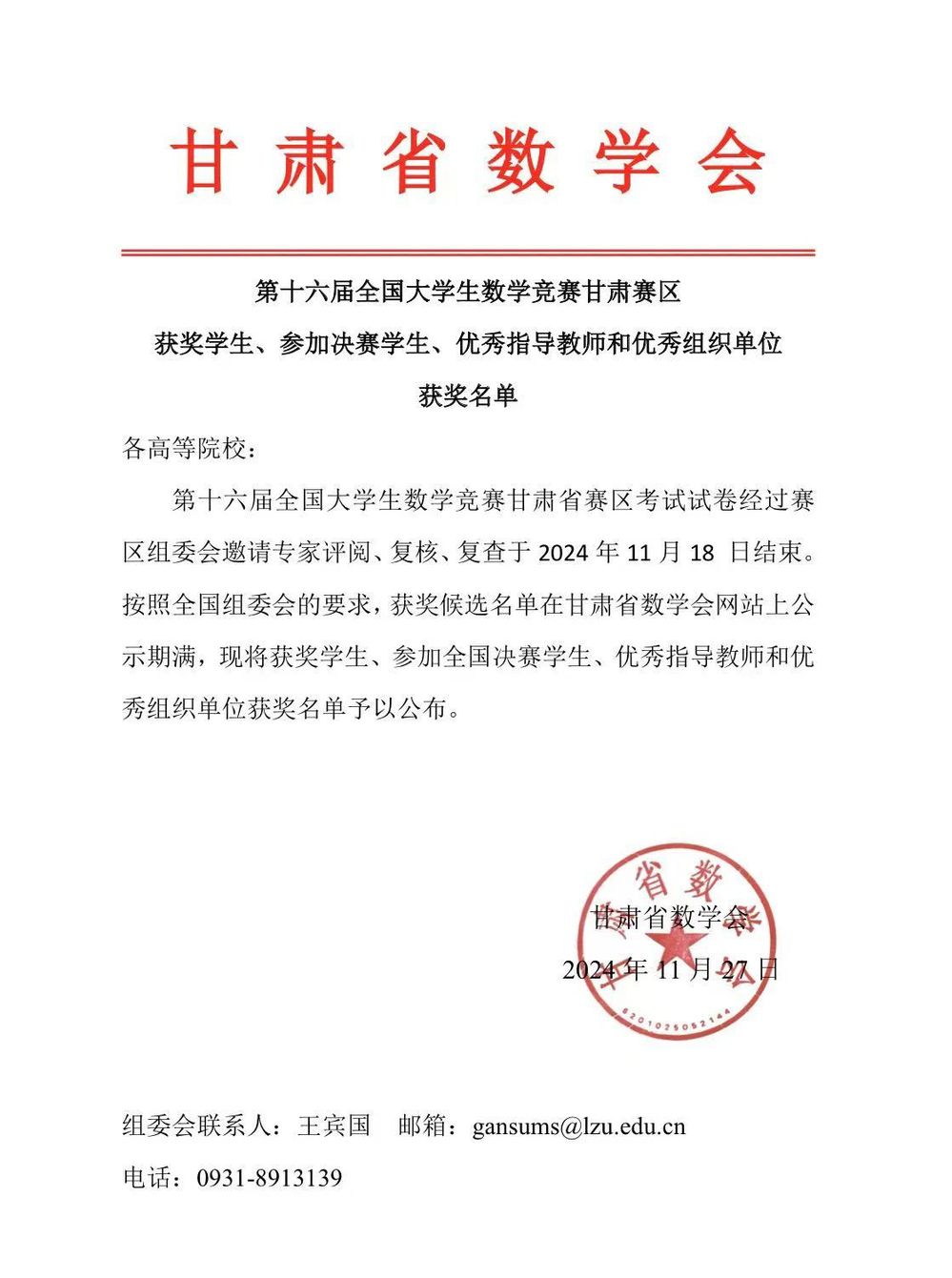 近日,甘肃省数学会公布了“第十六届全国大学生数学竞赛甘肃赛区”获奖名单,兰州工商学院共获奖16项,其中一等奖4项,二等奖6项,三等奖6项。