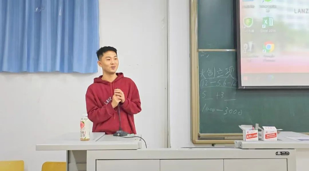 最后,经济学院的王奎以自己两年创新创业的亲身经历为新生们讲解了实践创业对我们能力提升的重要性。同时也分享了自己这两年过来的竞赛经验和心得,并与新生进行互动交流,也是希望我们的创赛圈注入更多的新鲜血液。
