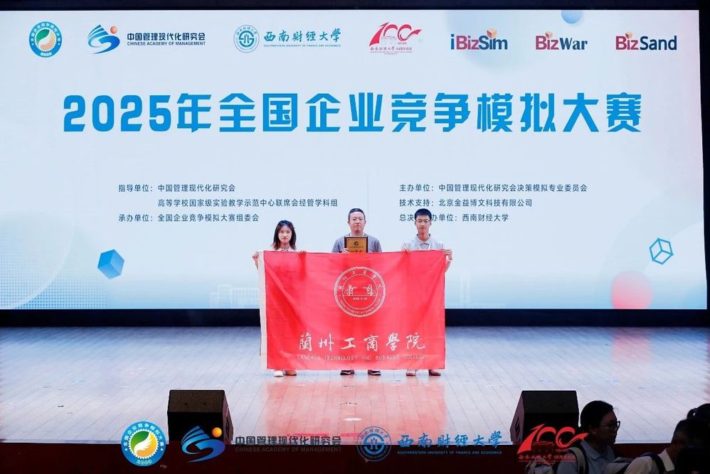 2025年5月18日,由中国管理现代化研究会决策模拟专业委员会主办、西南财经大学承办的全国企业竞争模拟大赛总决赛圆满收官。兰州工商学院代表队在激烈的竞争中脱颖而出,斩获企业决策赛道一等奖,展现了卓越的商科素养与团队协作能力。