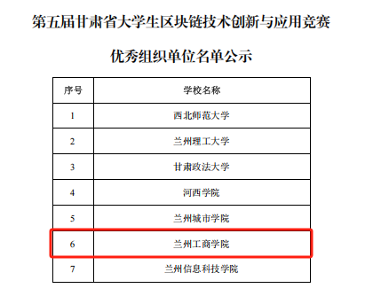 为进一步推动区块链技术在高校间的创新应用与交流,提升大学生对新兴技术的实践能力,6月21日,第五届甘肃省大学生区块链技术创新与应用竞赛在西北师范大学成功举办。我校共有20支参赛队参与本次省赛,共有7支队伍获奖,其中特等奖2项,一等奖2项,二等奖3项。曾格格、梁磊2名教师获“优秀指导教师”,学校获“优秀组织奖”。
