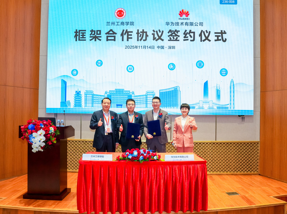 11月14日,兰州工商学院与华为技术有限公司(以下简称“华为”)在深圳华为总部签署框架合作协议。根据协议,双方将深入整合各自优势资源,在探索兰州工商学院ICT人才培养、产教融合、现代产业学院建设、数智化转型等领域建立全面合作关系,开启双方深度合作新里程。签约仪式上,兰州工商学院校长王华栋、华为企业培训与认证业务部院校大客户部部长李丹出席并见证签约;兰州工商学院创新创业学院院长张浩,华为甘肃政企副总经理、甘肃政企Marketing与解决方案销售部部长胡寅代表双方签约。