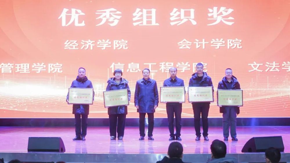 随后,大会迎来了首届“融创杯”大学生创新创业大赛的颁奖仪式。本届“融创杯”共评选出一等奖、二等奖、三等奖、优秀奖及多个单项奖。经济学院、外语学院、文法学院、艺术学院、土木工程学院等二级学院的领导作为颁奖嘉宾,逐一为获奖团队负责人颁发了奖杯与奖品。一份份荣誉,既是对参赛学子智慧与汗水的最佳褒奖,也生动体现了学校以竞赛驱动创新、以项目赋能实践的育人成效。两项奖励相辅相成,共同折射出学校创新创业教育的蓬勃生机与丰硕成果。