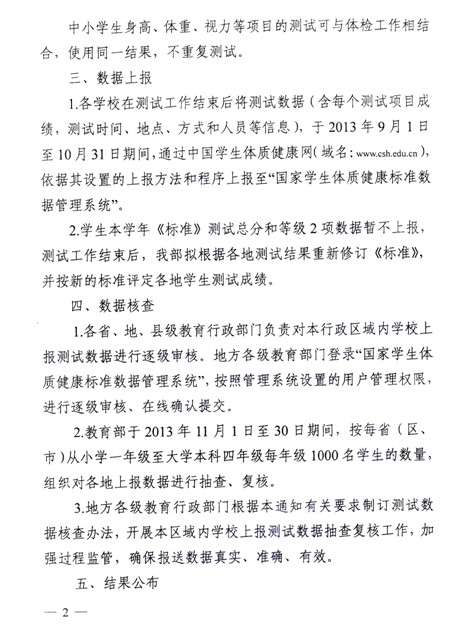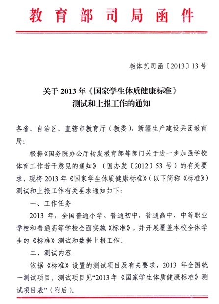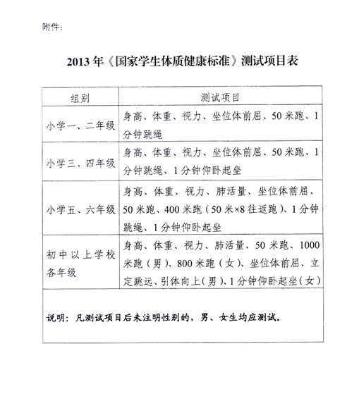 关于2013年《国家学生体质健康标准》测试和上报工作的通知