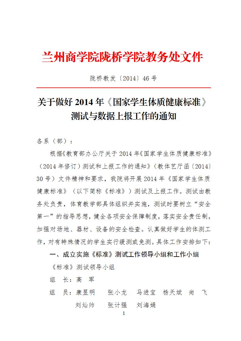 关于做好2014年《国家体质健康标准》测试与数据上报工作的通知