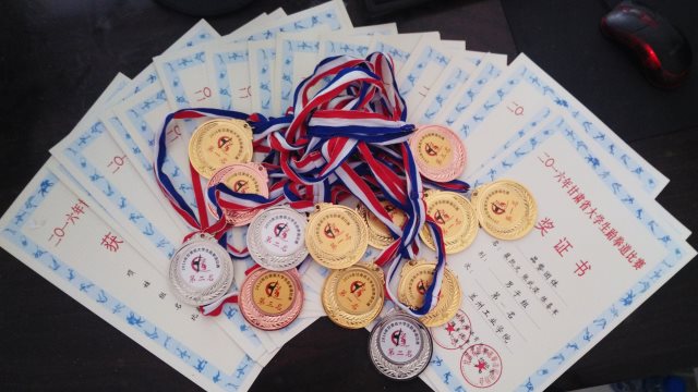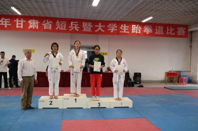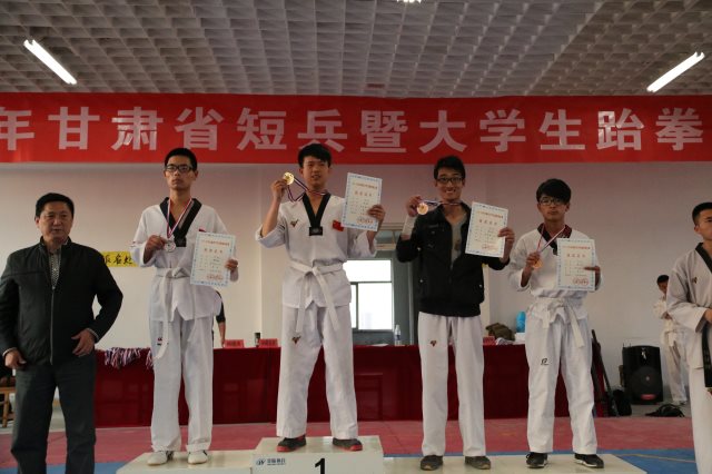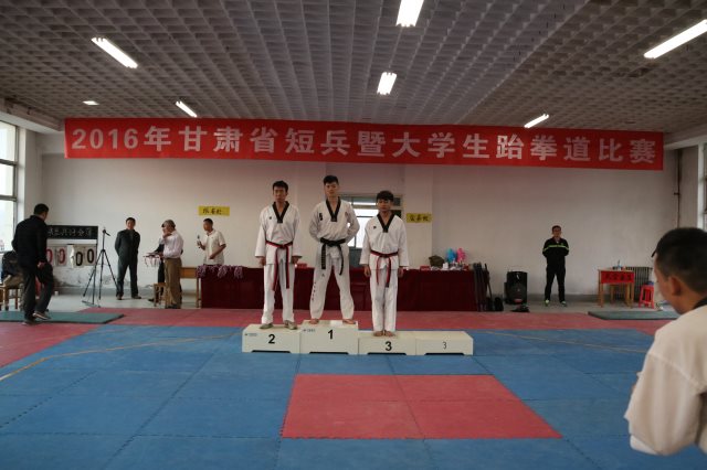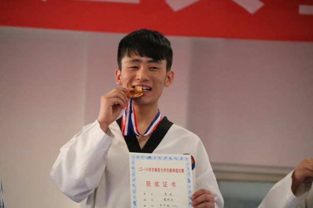 我院跆拳道训练队在2016年4月30日省体育总会组织的2016年“甘肃省大学生跆拳道比赛”中,喜获奖牌16枚,荣誉证书21张。其中包含10枚金牌,3枚银牌,3枚铜牌及团体品势第一的优异成绩。岳勇斌老师荣获本次“优秀教练员”称号