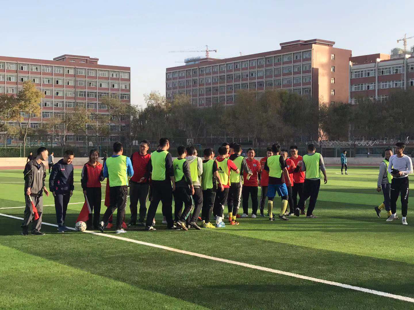 比赛刚刚开场,队员们就迅速进入了比赛的状态,双方都使出了全力你拼我抢,没有丝毫的保留。上半场刚刚开场十分钟。体育教学部联队就抓住对方的后场失误,率先打破僵局。教职工联队丢球之后,也更是加强了在前场的高位逼抢。组织了几次有威胁的边路渗透,奈何在把握机会上还是稍有欠缺。双方你来我往,观众的激情也被这样精彩的比赛点燃了,大家欢呼声也更是激励着场上的每一位球员。这时体育教学部联队的一个过顶长传,正好传在前锋的脚下,一扣一抽,球打进了死角,体育教学部联队,再一次将比分拉大。下半场易边再战,双方也是做出了人员轮换,比赛也是你来我往,十分精彩,各有进球。随着主裁判的一声长哨,比赛结束。此次表演赛是在学院领导和关心下举办的,目的是增强老师们之间的交流,丰富大家的课余生活,发扬拼搏,永不言弃的进取精神。