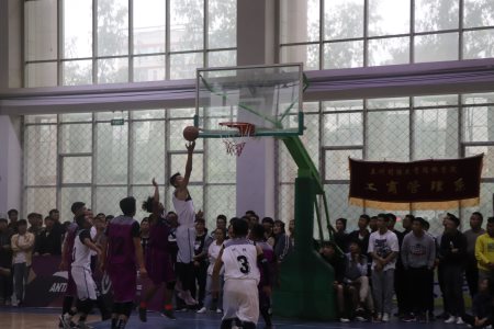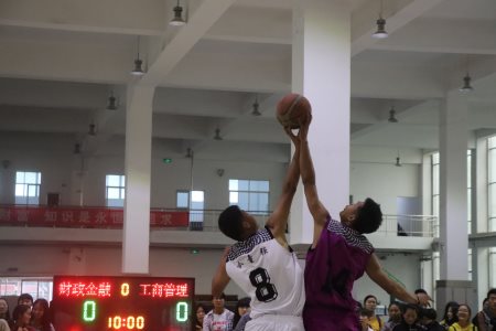一边再战,财金9号在下半场开场又打进一个振奋人心的“2+1”,工管拿球后10号一个出其不意的助攻帮助23号得分,激烈的比赛中工管在一步步追分,几个回合下来,工管的23号“2+1”回击,14号的挑篮命中,工管成功将比分追至61平,第三节比赛还有一分钟,双方比分紧咬,财金8号的追身大帽更是精彩万分,随后双方比分交替上升,进入到白热化阶段,第三节比分81:82。