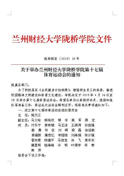 关于举办兰州财经大学陇桥学院第十七届体育运动会的通知