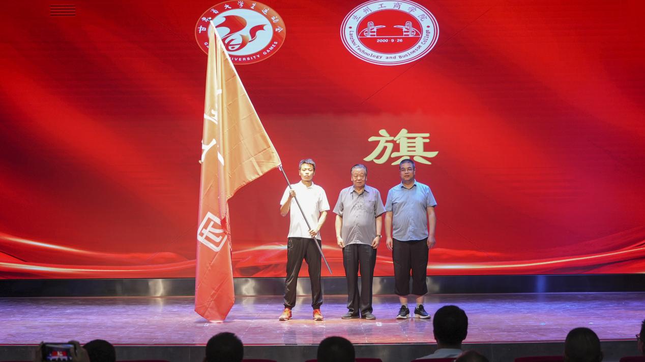 董事长完颜弟进行授旗,为我校体育代表团加油鼓劲、助威壮行。