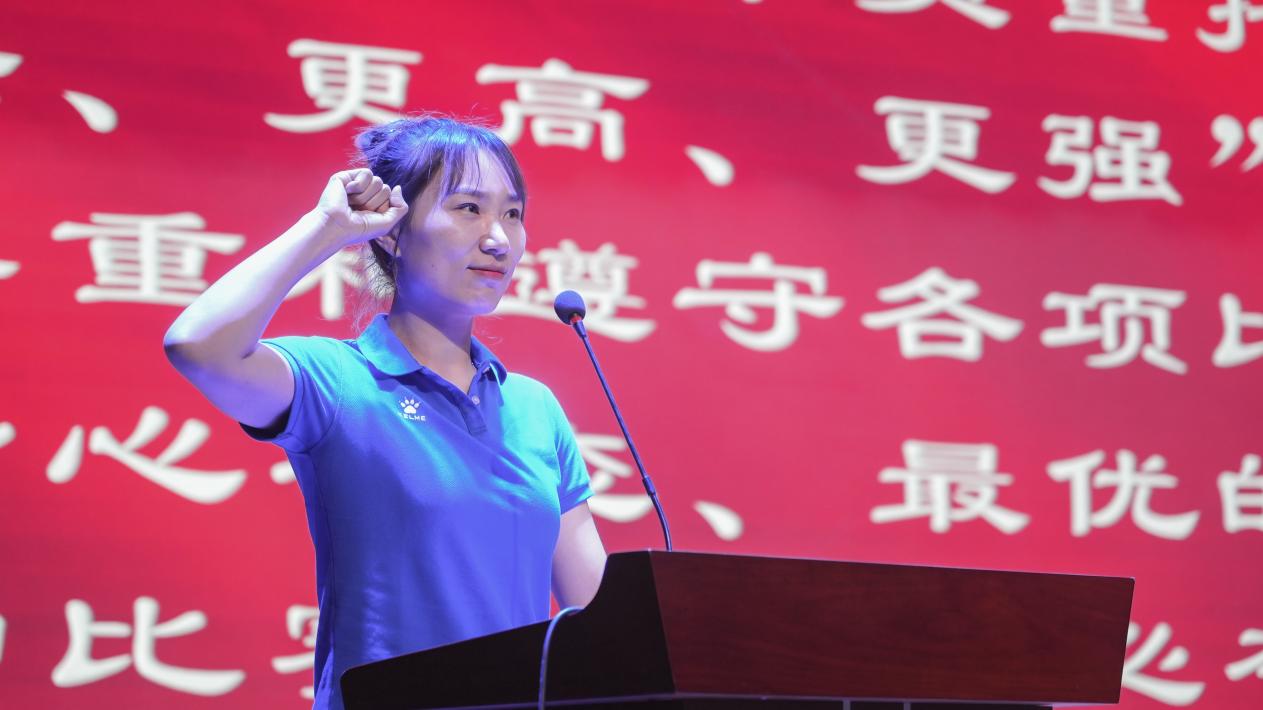 出征仪式上,体育教学部副书记、教练员代表邱妍妍老师带领全体教练员、运动员做庄严宣誓,表达了精心备战、不负重托,大力发扬“更快、更高、更强”的奥林匹克精神,尊重和遵守各项比赛规则,以最佳的身心状态、最优的竞技水平投入备战和比赛,有金必夺、有分必争,为大运会增辉、为学校争光、为人生添彩的决心。随后各代表队分别展示参赛宣言。