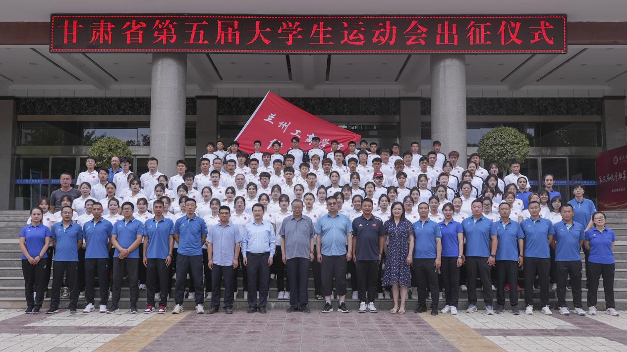 7月11日下午,甘肃省第五届大学生运动会兰州工商学院代表团出征暨授旗仪式在学校学术报告厅隆重举行。董事长完颜弟,党委副书记、常务副校长、代表团团长马义哈,党委副书记、副校长郇东,教务处处长王永伟,体育教学部班子成员,代表团全体教练员、运动员参加出征仪式。仪式由体育教学部副主任朱永红主持。