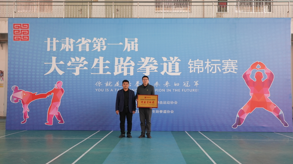 10月21日—22日甘肃省第一届大学生跆拳道锦标赛在我校体院馆三楼成功举办,在学校领导的大力支持和体育教学部老师的辛勤付出下,比赛于22日胜利闭幕,校领导亲临现场主持开闭幕式并参加颁奖仪式。