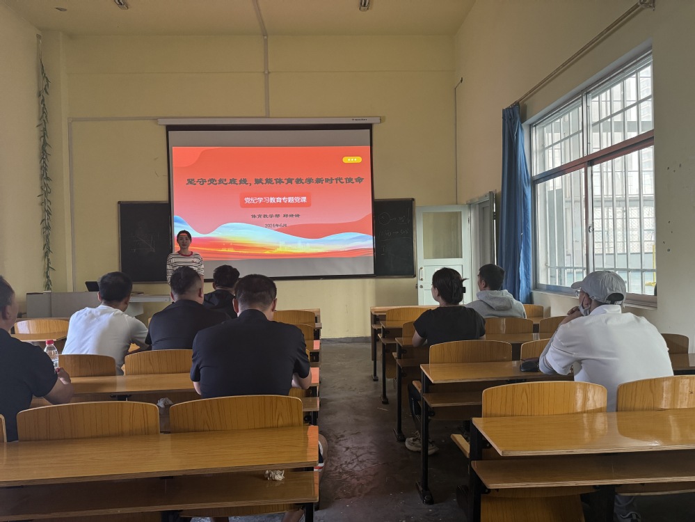 在积极响应上级党组织号召,持续加强党风廉政建设的背景下,体育教学部于6月13日在会议室举办了以“强化纪律意识·赋能教育新使命”为主题的党纪学习教育活动。此次活动旨在深入贯彻全面从严治党要求,进一步提升党员教师的纪律规矩意识,为体育教学工作注入新的活力与使命感。