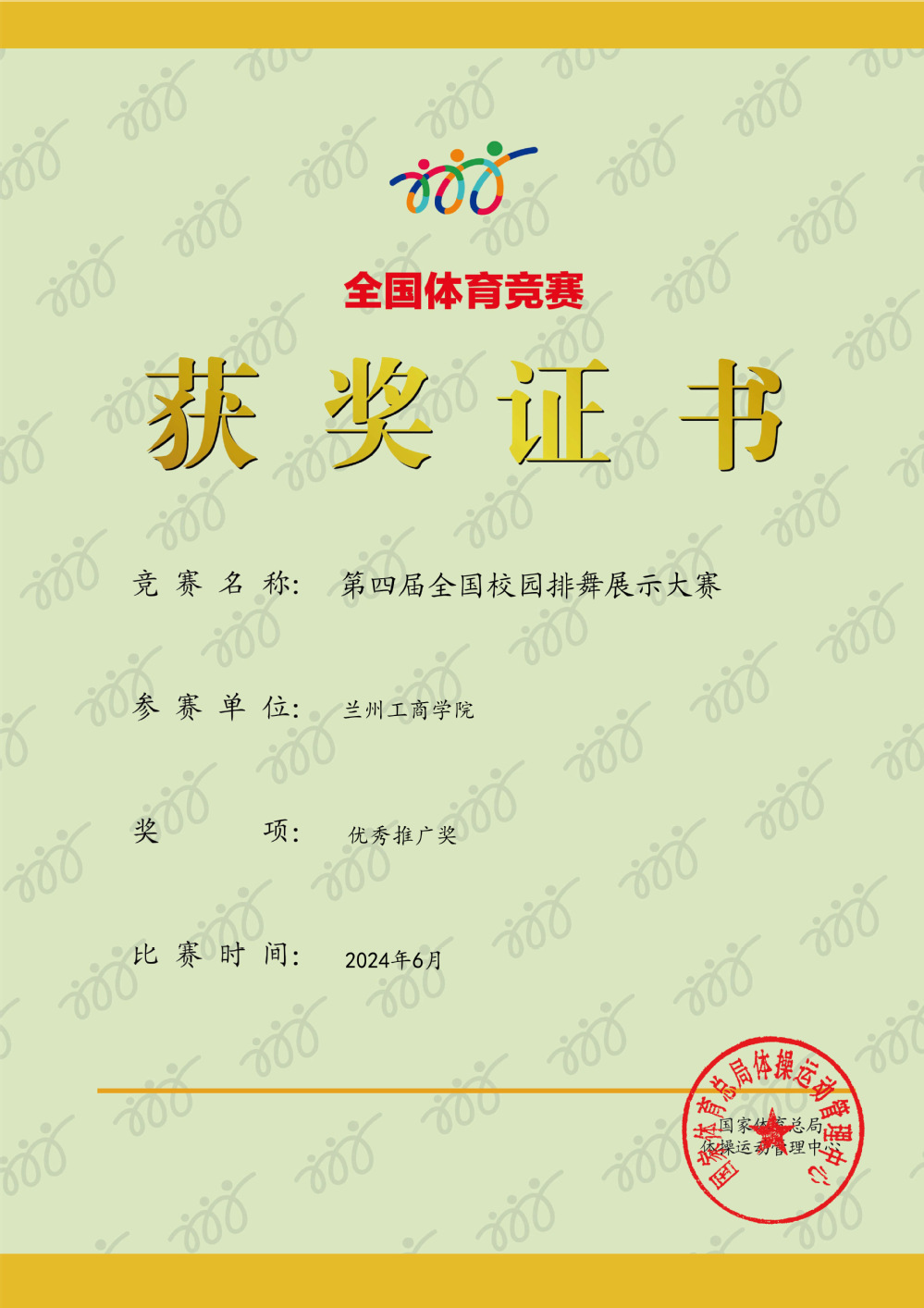 本次大赛由国家体育总局体操运动管理中心主办,通过网络直播的方式进行,历时三天,共吸引了来自全国各地200多支队伍,近5万名学生参加,赛事规模创历届之最。我校代表队在邱妍妍、邓萱两位老师的指导下,百余名学生克服炎热,认真训练,与全国91支高校队伍同台竞技,这次成绩的获得是我校积极探索体育教学改革“教会、勤练、常赛”的成果显现。通过引入排舞教学和比赛,营造了校园阳光体育的氛围,丰富了校园文化生活,提升了大学生综合素质,让体育课从课堂延伸到校园生活的各个角落。
