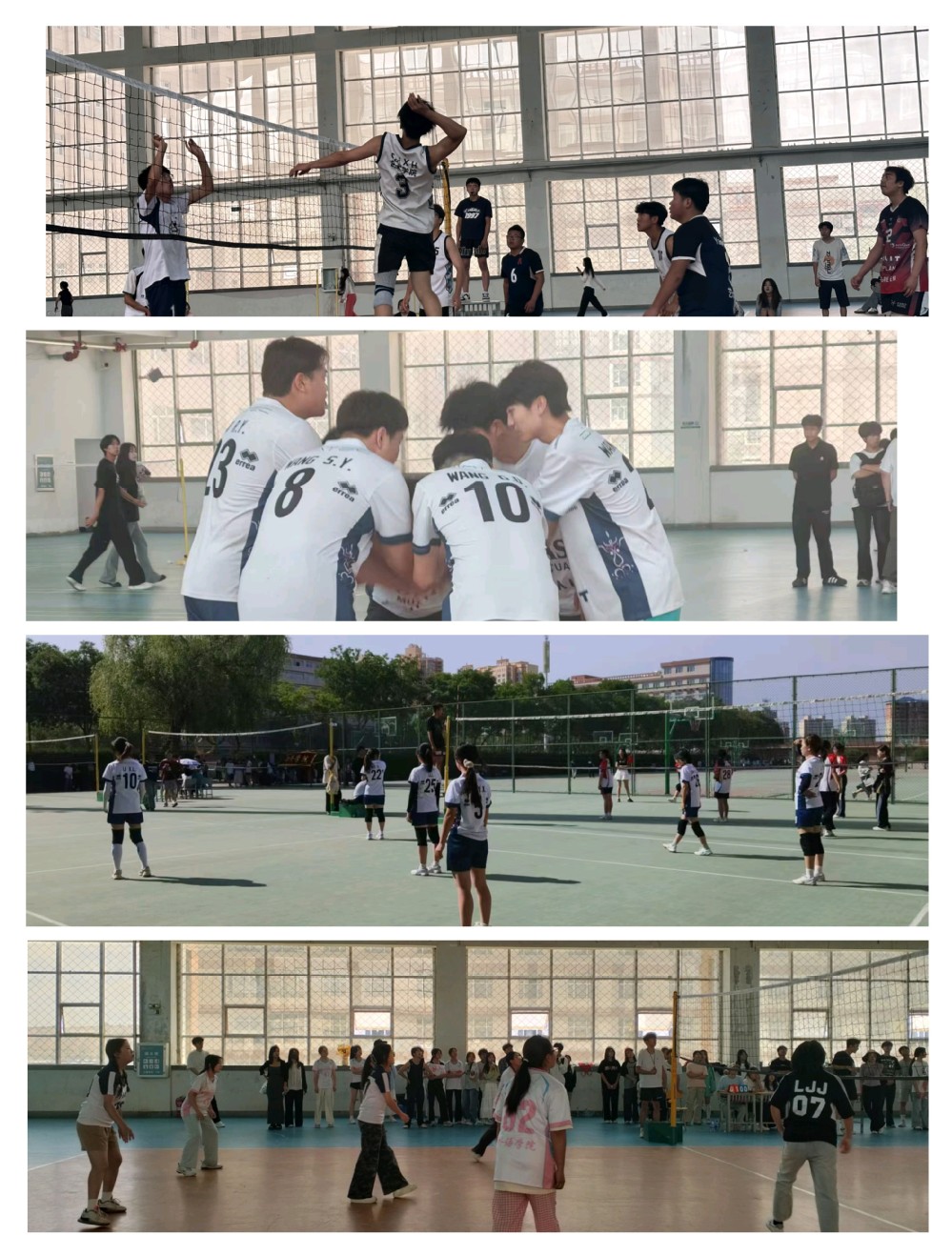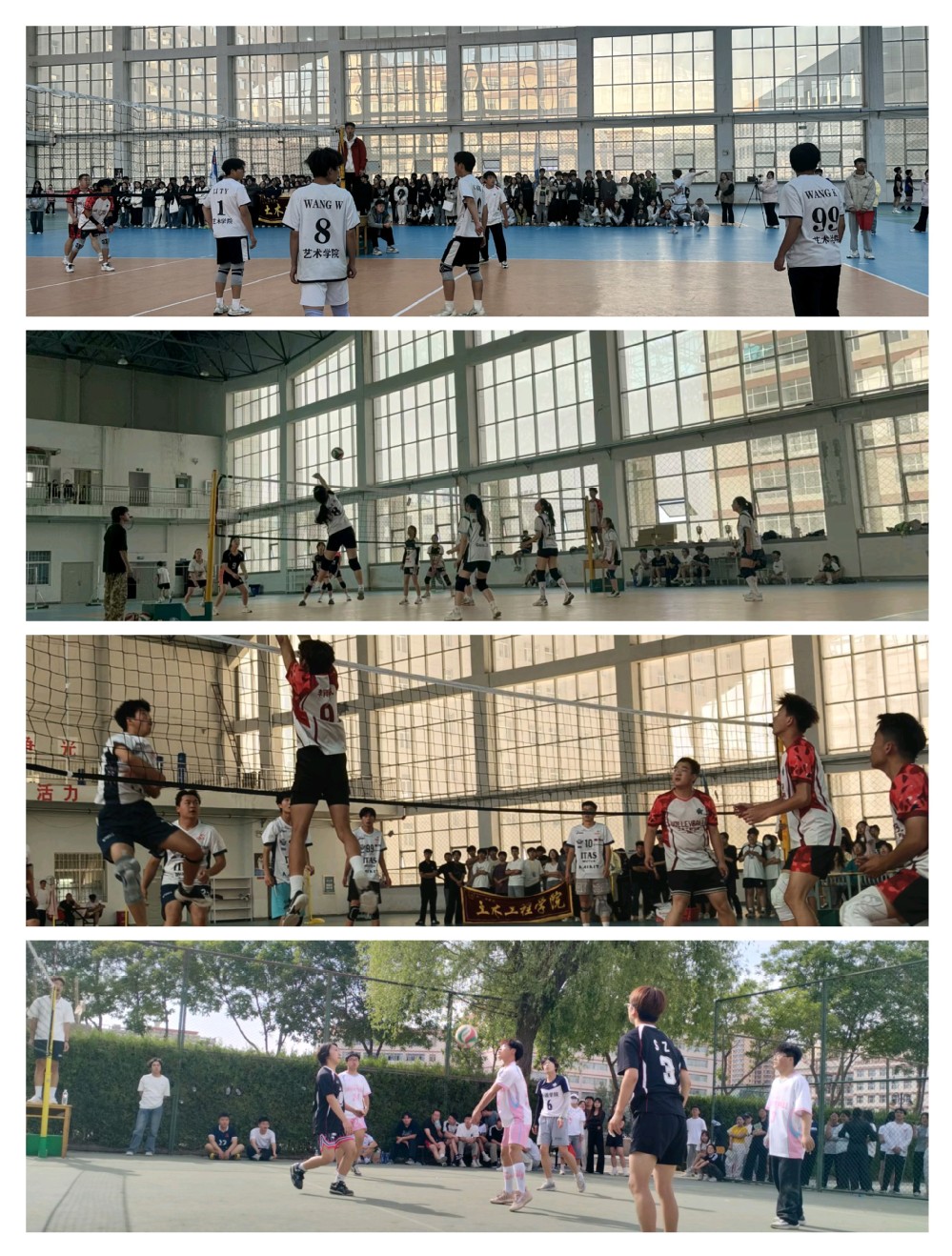 赛场上,发球区的球员沉稳发力,后排球员精准补位,精准的传球、强力的扣球,将现场气氛一次次推向高潮。赛场外,各学院啦啦队的加油声震耳欲聋,为比赛增添了一抹亮丽的风景线,球员们在这样的氛围中愈战愈勇,彰显出青年学子顽强拼搏、永不言弃的青春风采。