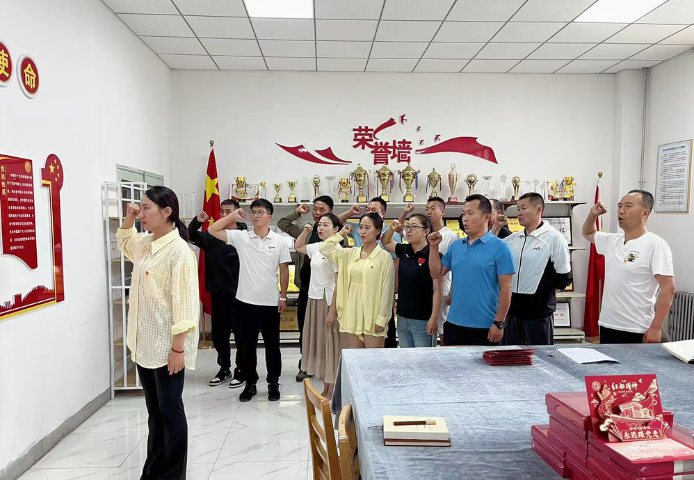 活动伊始,全体党员佩戴党徽,面向党旗庄严宣誓,重温入党誓词,铿锵誓言回荡在会议室,唤醒了每位党员的初心与使命。随后,支部为过政治生日的党员赠送了精心准备的贺卡与礼物,贺卡上的寄语承载着党组织对党员的殷切期望。