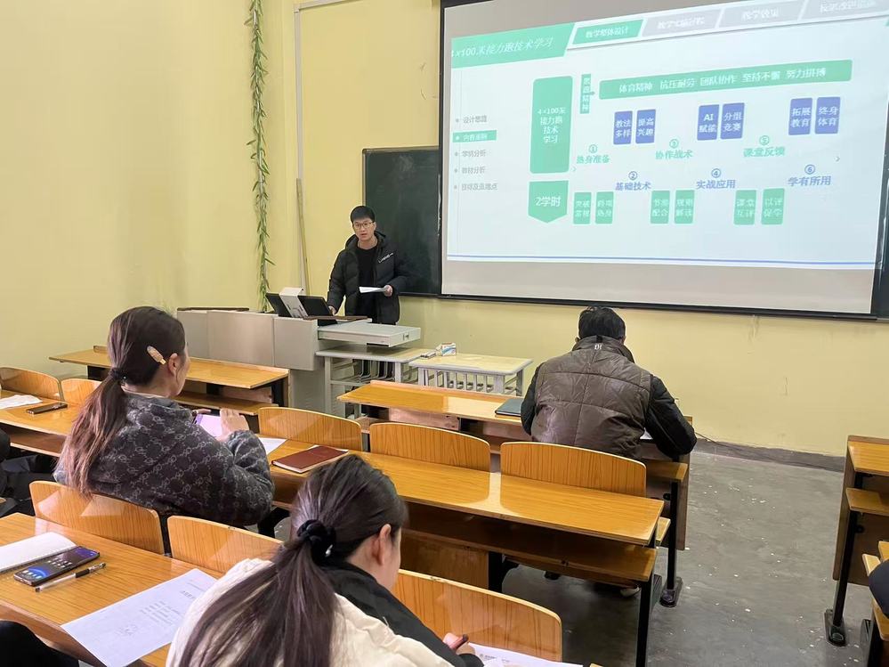 活动中,梁海军、范晓亮两位教师分别围绕参赛课程的教学设计、说课PPT、教学创新点等核心内容进行现场展示。两位教师紧扣赛事“提升教学能力、促进体教融合、培育创新人才”宗旨,结合各自参赛组别特点,清晰呈现了课程依据、学情分析、教学策略、课程思政融入及运动安全教育等关键环节,充分展现了扎实的教学功底与创新思路。