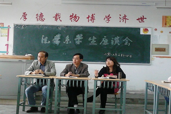 最后系主任蒲春平表示:此次座谈会的召开对于我系做好教学工作很有启发性,对于同学们提出的意见和建议,系上将认真研究,争取早日解决存在的问题,为同学们创造更好的学习生活环境。同时也希望同学们把今天的会议精神传达给各位同学,并好好学习,打好基础,珍惜大学生活;在以后的学习中发现问题要及时反映,及时沟通;希望大家遵守学校相关规定,培养良好的学风,学到真本领。