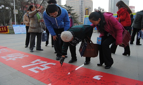 虽然十二月的天寒气逼人,但在活动现场,同学们热情的向过往行人发放宣传材料、耐心的讲解法律知识,使法律深入社会,提高了法律意识,增强了法治观念,让更多人知法、守法、懂法、用法,构成了东方红广场一道美丽的风景线。同时由我院学生发起的以“树立宪法权威,增强法治精神”为主题的万人签名活动得到了社会的一致认可,此次普法宣传活动取得圆满成功。