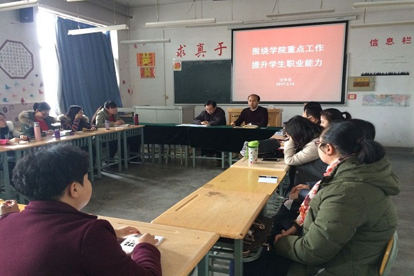 3月14日下午,法学系在1-509教室召开了以“围绕学院重点工作、提升学生职业能力”为主题的工作会议,会议由系主任蒲春平副教授主持,全系教师参加了会议。