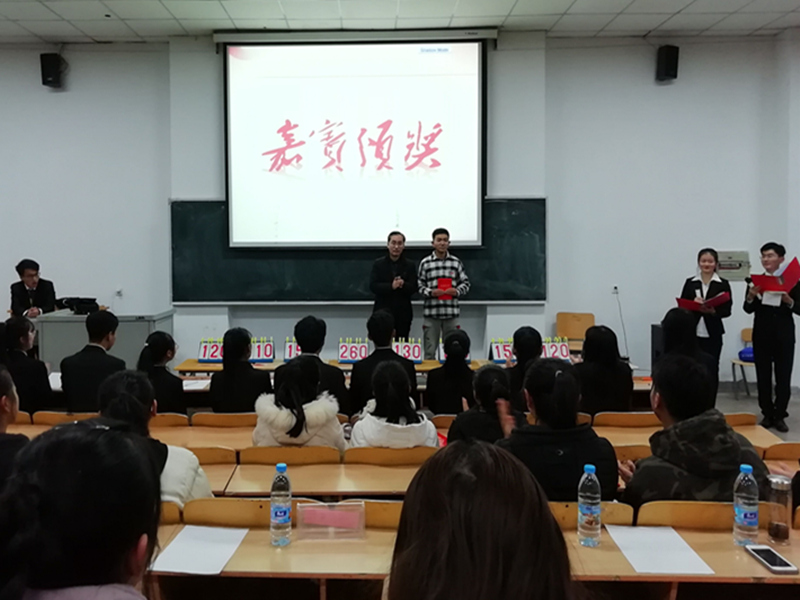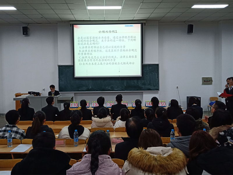 全院9个系派出各自代表队参加了本次法律知识竞赛,比赛分为团队介绍、个人必答题、团队必答题、风险题、观众答题五个环节,各个环节选手们都积极作答,比分也在激烈地角逐中逐渐拉开了差距,更是把整场比赛紧张激烈的气氛推向高潮。各系代表队答题结束后,为加大法治宣传力度、增强现场观众的参与感,进行了观众互动答题环节。活动最后由法学系系领导及老师为获奖代表队颁奖。