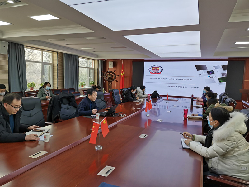 2021年1月9日下午,西北师范大学法学院院长杜睿哲教授应邀为我系教师做学术报告,报告在学院帷运楼二楼会议室举行,法学系全体教师聆听了报告。