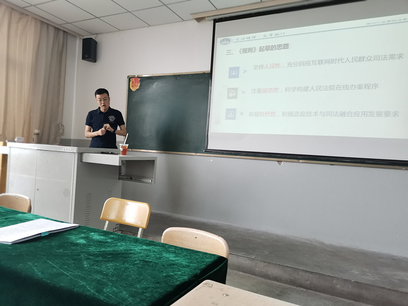 《人民法院在线诉讼规则》解读,由李毅老师主讲。他首先对最高人民法院关于在线诉讼的相关规则进行梳理,并对《规则》的起草背景与思路进行了总体分析。接着对《规则》的主要亮点,包括在线诉讼的内涵及效力、基本原则、适用范围、适用条件、主要程序规则、妨害在线诉讼的处罚及在线数据信息保护等方面进行逐一讲解。最后,结合自己所主持的课题提出了对于《规则》的几点思考。第一,人工智能时代法学实践教学模式如何进行变革?分别分析了法学学生和教师所面临的时代挑战。第二,人工智能技术对司法审判的冲击如何进行规约?他指出《规则》的出台仅仅是规范在线诉讼的合理性,但完全解决还需要从法理中解决与传统诉讼的冲突。第三,智慧法院建设的理论困境与实践障碍如何进行破解?他认为这也是下一步在线诉讼发展完善所必须解决的问题。