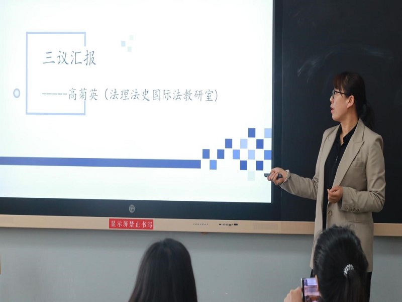 5月18日下午我院法理法史国际法教研室在博学楼506教室进行了2021-2022学年第二学期期中“三议”复盘工作,法学院院长助理马心怡老师应邀参加了这次复盘工作,首先由教研室各位老师对近期工作完成的进度及目标达成现状进行了汇报,教研室主任孔佰洪老师针对各位教研室老师的目标完成情况,对教研室近期工作目标的完成情况、工作中存在的不足以及工作中出现的共性问题进行了梳理和总结。