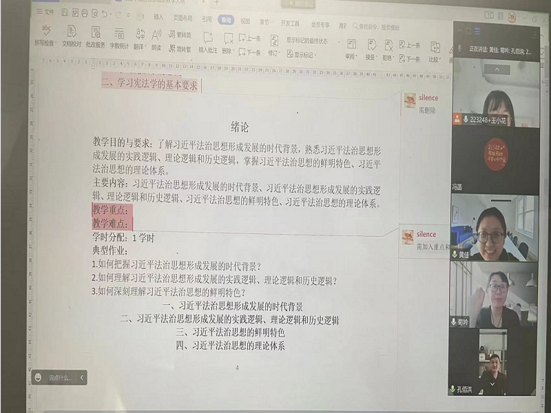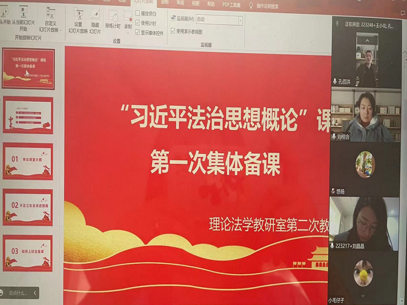 一枝独秀不是春,百花齐放春满院。集体备课有利于充分发挥集体智慧,做到知识共享,为保证“习近平法治思想概论”课程按计划、高品质开设,法学院理论法学教研室于10月10日下午通过线上方式举行了“习近平法治思想概论”第一次集体备课活动。