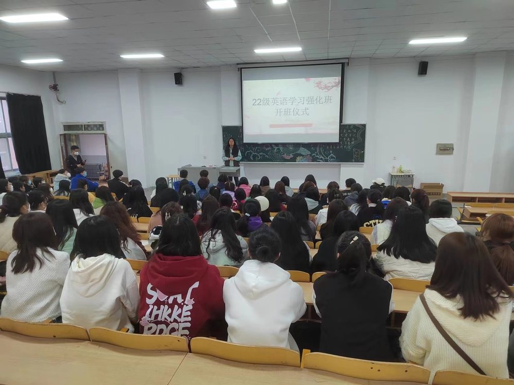 为了提升学生英语学习能力,提高英语过关率,为考研打好公共课基础,法学院通过选拔组建了22级英语学生强化班。3月12日19:00,法学院在1-415举行了22级英语学习强化班动员会。院长刘海娟,辅导员蔡小斌、李毅雄出席了动员会,共100余名学生参加此次动员会。