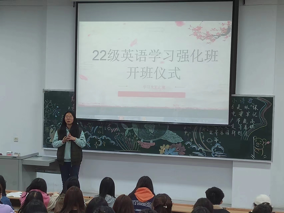 最后,刘院长对全体同学提出三点要求。第一,本次班级旨在加强英语学习,帮助提高同学们英语水平,同学们对此不能有排斥心理,要正确理解积极配合,把“要我学”努力转化为“我要学”;第二,要认真遵守学习规划,并根据自己情况,制定自己的学习计划,积极参加学院组织的集中学习和模考;第三,同学们要通过自己的努力,成为各班学习的标兵,带动建立良好的班风、学风,使法学院形成团结一心、奋发上进的良好院风。预祝全体同学通过强化班的学习,在未来四六级和考研中取得更加优异的成绩,为自己的未来创造更多的机会,不负学习,不负青春。