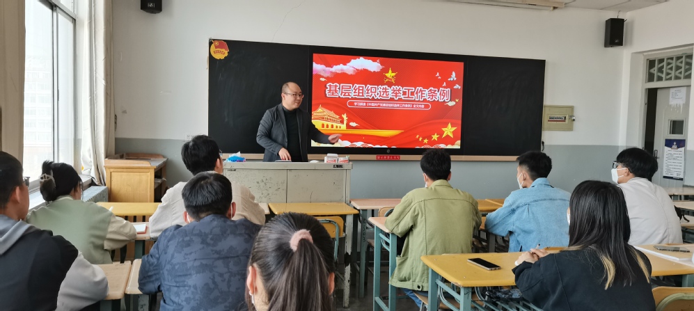 3月27日下午,法学院党总支书记刘涛在1号教学楼510教室为法学院全体学生正式党员上了主题为“学习贯彻选举工作条例,汇聚党的基层组织伟力”的专题党课。