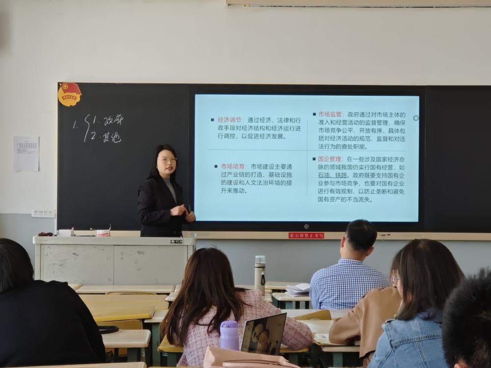 柴宝红老师选择“行政职能”的教学内容进行展示,课程内容主包含行政职能的含义及行政职能的具体内容,即国家安全职能、经济职能、社会职能、文化职能及生态环境保护职能。教学环节包括前课回顾、新课导入与讲解、课程小结及课后作业布置。在教学展示结束后,教研室各成员分别就教学观摩情况进行交流探讨及点评,大家认为柴老师的教学优点在于教学设计清晰流畅、教学内容充实、课程思政元素融入自然恰当、教学效果较好,下一步需要继续优化板书设计、完善理论前沿问题的扩展深度等内容。工商管理学院教学院长徐燕、土木工程学院院长助理刘少东、会计学院石彩艳老师分别就此次观摩活动进行了评价。