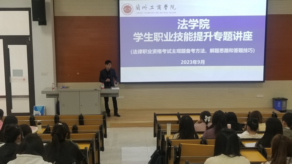为了鼓励法学院学生积极备考国家法律职业资格主观题考试,提高学生国家法律职业资格考试通过率,切实提升我院毕业生就业率,实现学生毕业即就业的目标,我院于9月27日下午在综合教学楼C区603教室举办了“学生职业技能提升专题讲座”专题讲座,本次讲座由法学院行政院长刘涛主持,邀请西北民族大学法学院法考指导师田杜国副教授主讲。法学院教学院长葛欣、2020级法学专业和2022级法学(专升本)学生客观题通过学生及部分备考法考的低年级学生聆听了本次讲座。