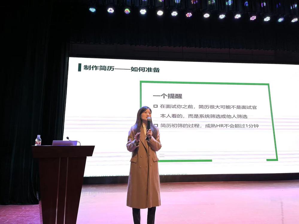 会上,任老师从简历撰写、就业信息获取、面试等相关内容进行培训,并围绕同学们普遍关心的一些就业问题进行了详细解答。并对毕业生提出了五点希望:一是认清形势、主动就业,树立“先就业后择业”的就业观;二是找准定位、量力而行,规划个人未来职业发展;三是付诸行动、积极备战,有目的、有针对的做好求职技能储备或各类考试的复习备考工作;四是坚定信念、挑战自我,正确面对求职过程中所面临的挫折与失败,不断总结提升个人技能;五是加强与家人的沟通交流,同时也应培养个人独立思考能力。