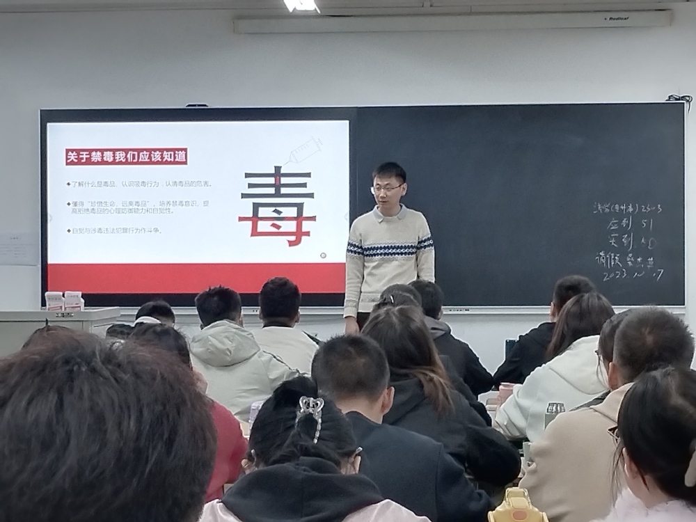 各辅导员老师通过对多种典型毒品以及新型毒品的“骗局”介绍,阐述了毒品蔓延无孔不入,并通过毒品对人体的危害以及毒品戒断的困难性告诫同学们毒品的可怕,一条条数据,一个个案例,多少人因为毒品而走上违法犯罪的道路,多少家庭因为毒品而破裂,看似遥远的毒品威胁更是有着近在咫尺的风险。