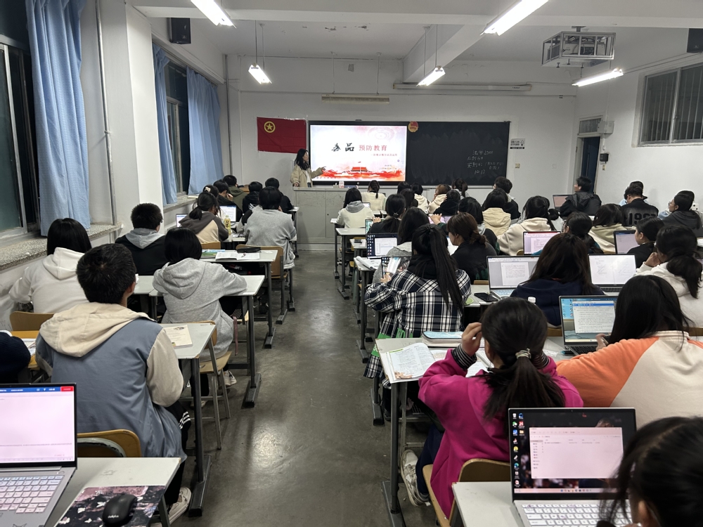 各班级通过禁毒宣传影片的观看,毒品知识的科普等多种形式开展班会,让同学们更加直观地了解我国乃至世界毒品蔓延的严峻形势,以及多种新型毒品防不胜防的威胁性,意识到毒品对个人精神以及对社会稳定的危害。