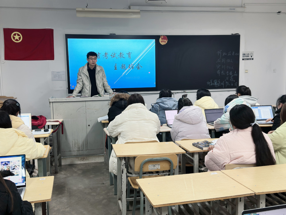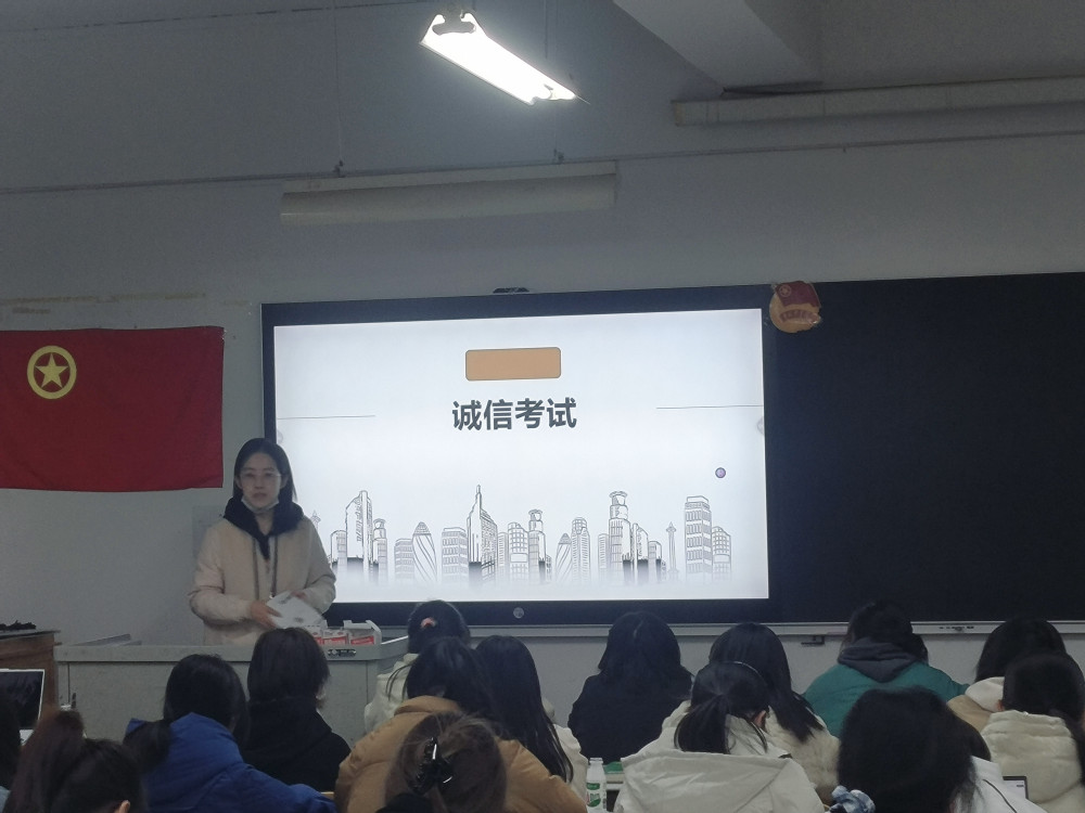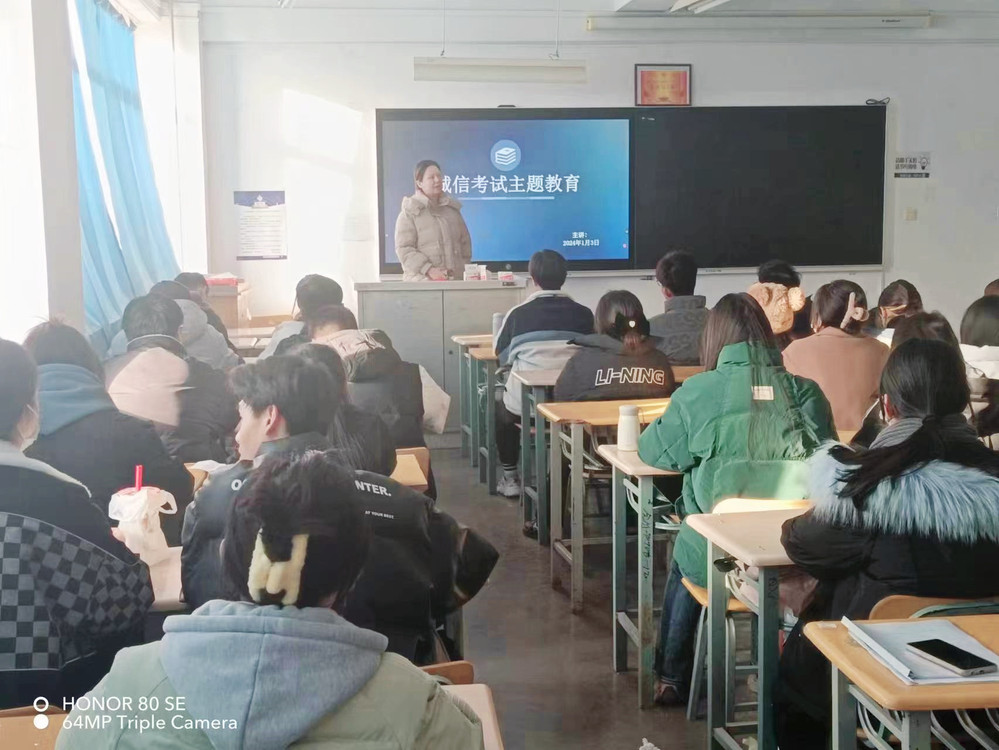 为进一步增强我院学生诚信考试意识,端正考风考纪,营造和维护公平、公正、诚实,守信的考试环境,1月2日至5日,我院组织召开诚信考试教育主题班会,深化学生对诚信考试的认识,增强自我约束意识。