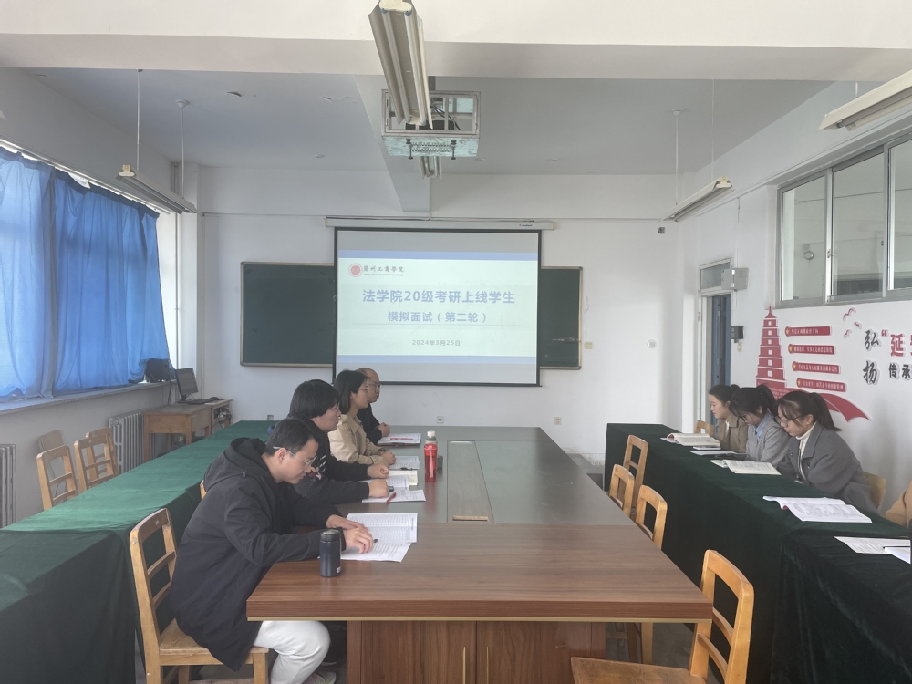 3月25日午,法学院在3号教学楼513会议室举行第二轮研究生复试面试环节的模拟活动。法学院教学院长葛欣,行政院长刘涛,专业教师刘晶晶、刘家薪和20名通过今年国家线的同学参加活动。