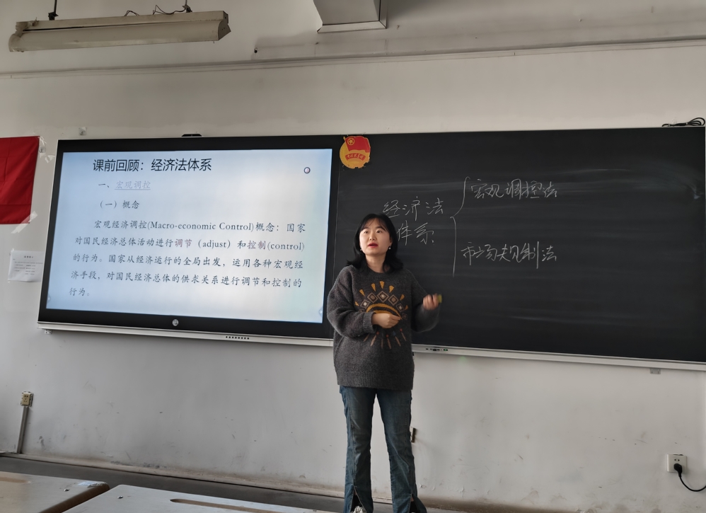 教学观摩活动中,青年教师徐月进行了《经济法概论》课程“宏观调控法的体系”相关内容的教学展示。从课前的经济法体系回顾,到新课程宏观调控法的体系、地位及与市场规制法的具体区别和联系等方面,对相关内容进行了系统性的讲授,通过在理解概念的基础上引入具体的案例带领学生探讨宏观调控法在社会生活中的实际应用效果,最后结合典型真题对本节课的内容做总结整理,深化学生的理解。课程讲授教学目标明确、重难点突出,能够将理论知识与实践案例结合起来,课堂效果良好。