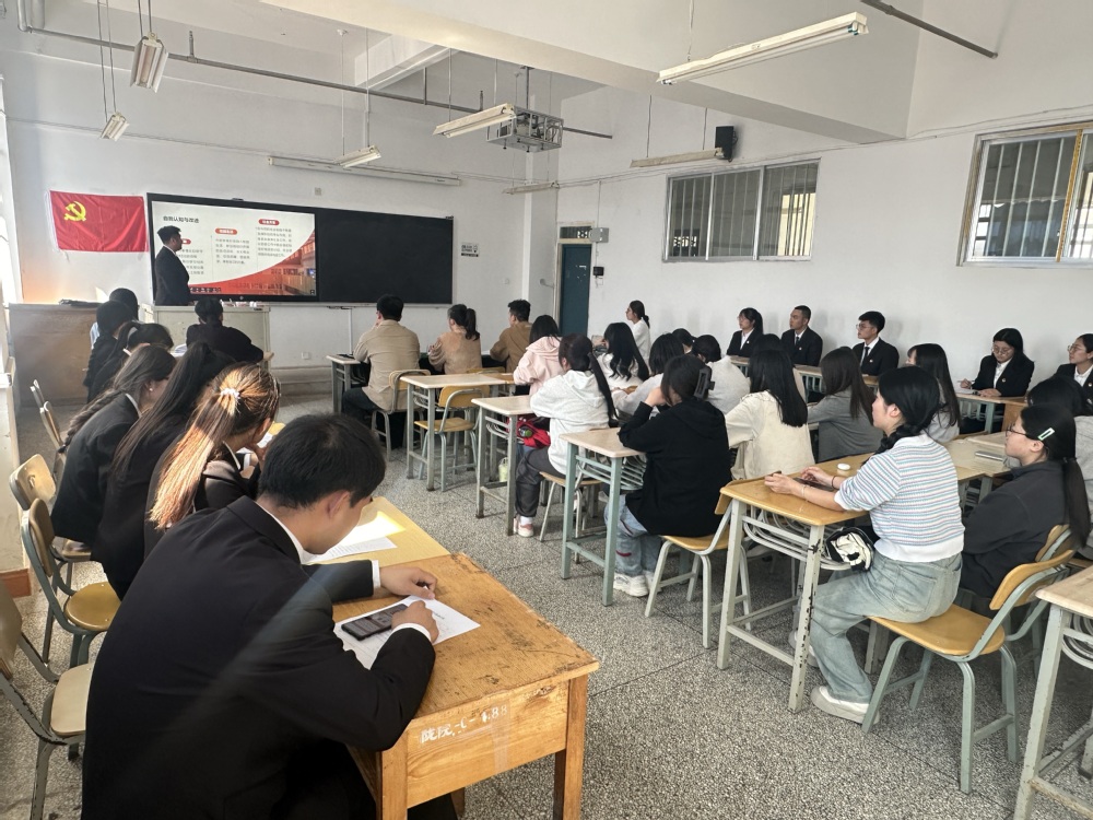 为进一步加强和改进发展学生党员工作,把牢学生党员发展的“入口关”,切实保证新发展党员质量,提高我院拟发展对象的政治素质和党性修养,根据《中国共产党章程》、《中国共产党发展党员工作细则》及学校有关规定,结合我院工作实际,2024年4月17日,学院各学生党支部在3号教学楼开展了2024年上半年拟发展对象答辩会,学院党委副书记赵胐、党政秘书王翔、受邀评委老师以及各学生支部支委和部分学生党员代表参加了此次答辩会。